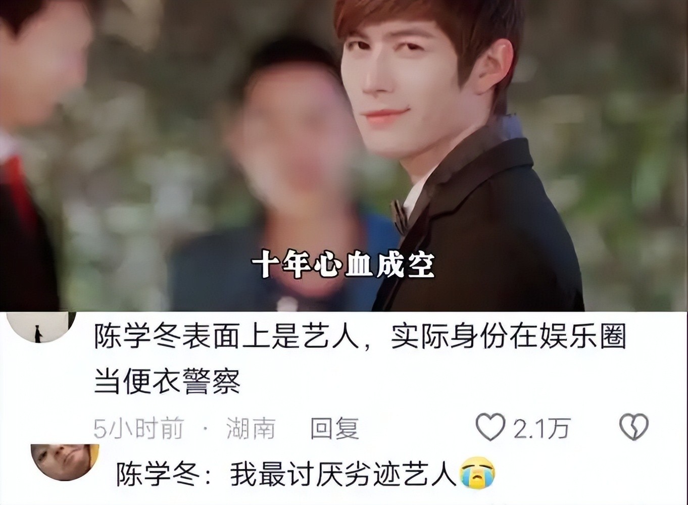 可怜陈学冬出道10年兢兢业业,归来仍是新人一枚,也因此被网友戏称“内娱的扫把星”、“行走的封杀预警”。