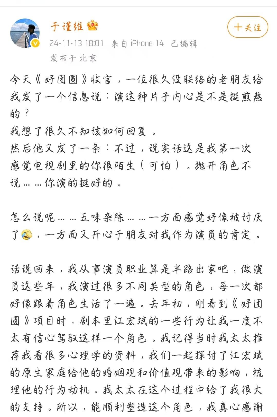 基于这一反面角色的形象太过冲突,大家纷纷好奇于小伟拍摄的心路历程,其实早在《好团圆》收官的那天,于小伟就已经在社交媒体上发布了自己的动态。