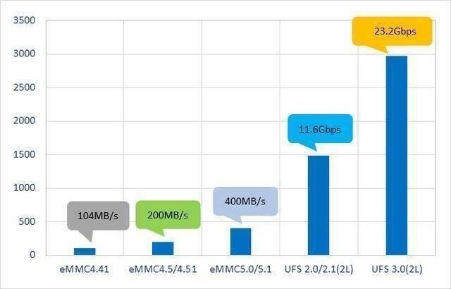 在行业内,现行的存储标准大致可以分为eMMC与UFS。而eMMC因为技术方面的天生劣势,所以并没有太大的提升空间。但是对于UFS而言,经过多年时间的升级迭代,现在行业中存在着UFS 1.0、UFS 2.0、UFS 2.1以及UFS 3.0三种标准,其中,UFS 3.0是在2025年1月最新发布的,性能比前代有了大幅的提升。