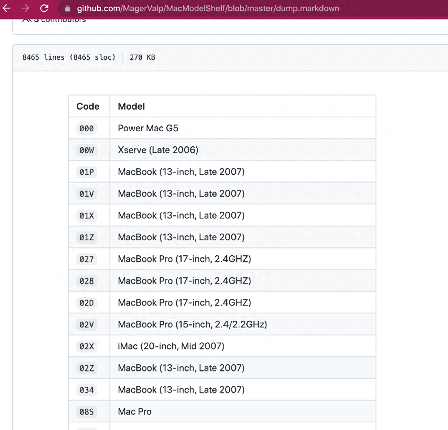 https://github.com/MagerValp/MacModelShelf/blob/master/dump.markdown
