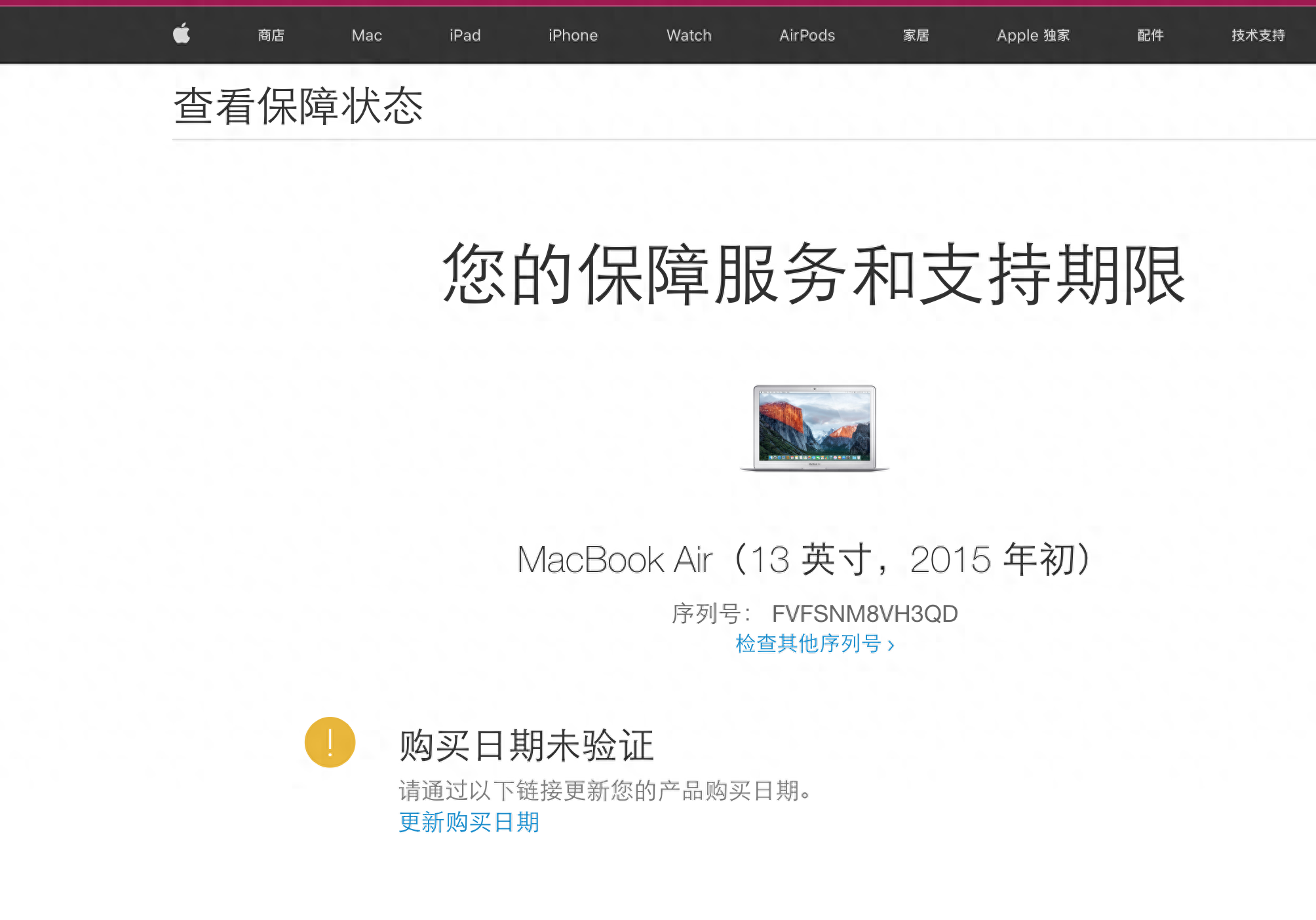 在核对下官网【2015年,未验证激活状态???】二手了居然未激活。所以总结下:这个机器有点问题。最好别买[呆无辜]。你钱多可以无视[狗头]。其次一般人看第四位就可以过滤掉一些以旧机冒充新机器产品了。