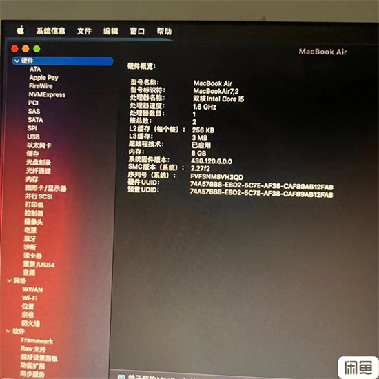 可以看到序列号是FVFSNM8VH3QD 【S代表16年】