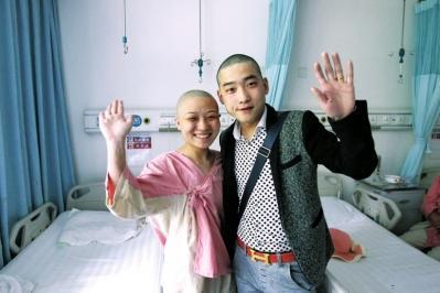 做第二次开颅手术时,海斌为了鼓励冯莹也理了光头。