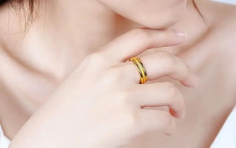 黄金戒指中的复古风格指环戒,无任何花纹、图案和镶嵌,多用手工或机械锤打而成。属于中性戒,男女皆可佩戴。