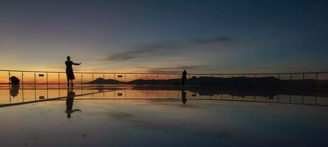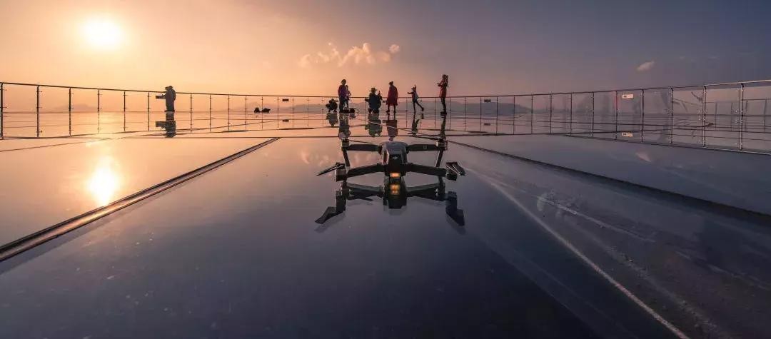 晴天时,蓝天和白云的倒影铺满栈道,有踏云而行的快感