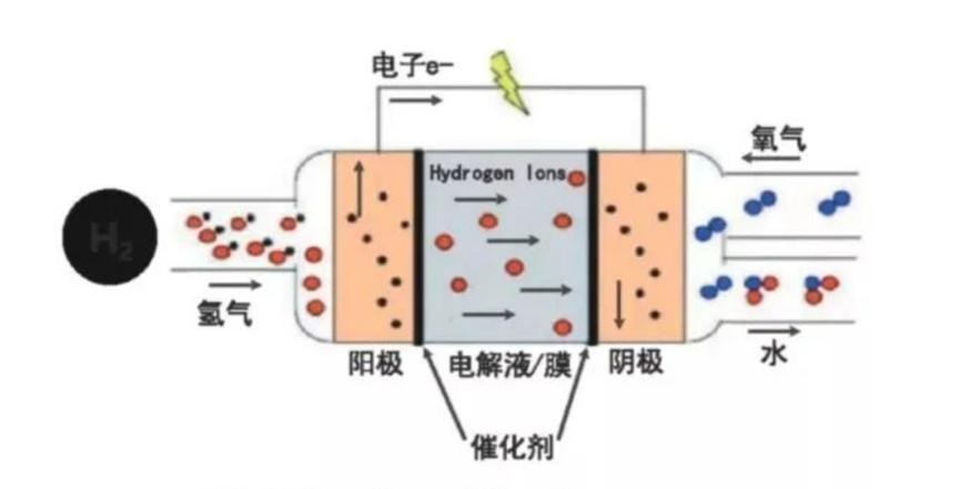 其中,氢气在阳极上被氧化成离子和电子,而氧气在阴极上被还原成水。离子通过电解质传递到阴极,电子则通过外部电路传递到阳极,形成电流。由于氧化还原反应产生的电位差,电流可以用于驱动外部电路和设备。