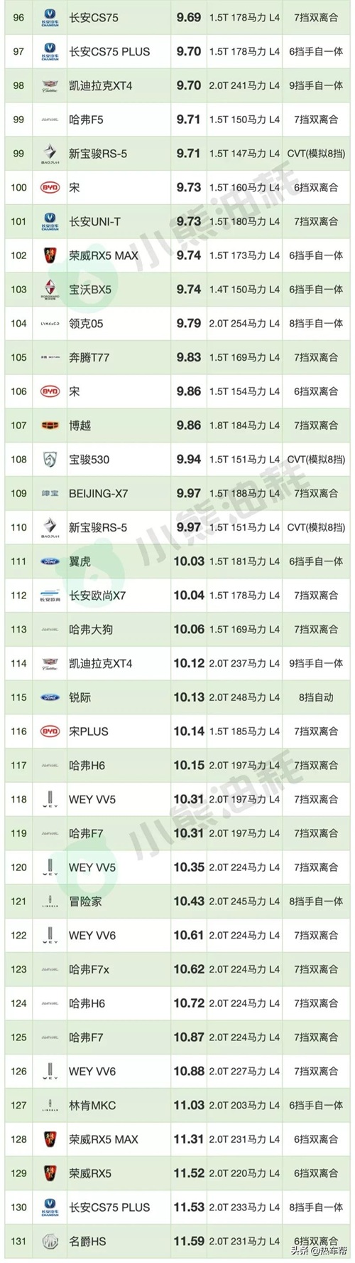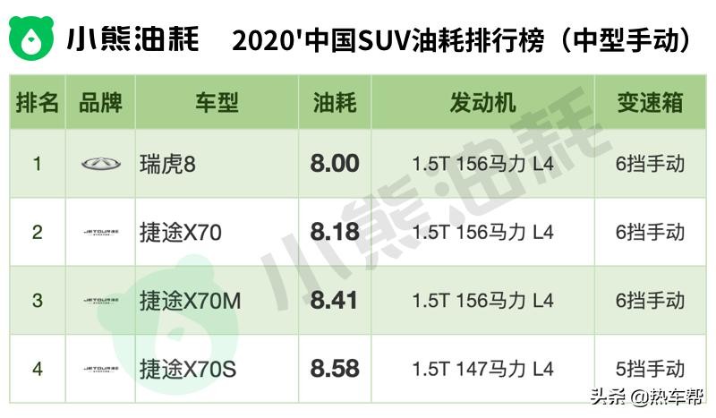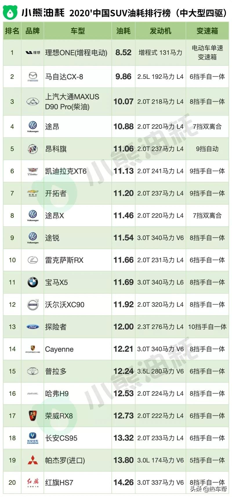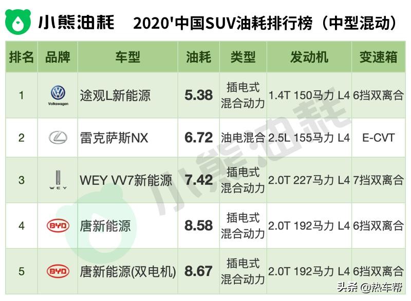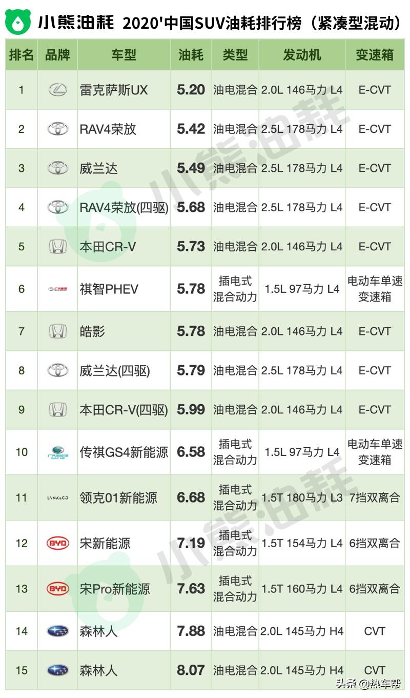 小熊油耗:2020年度中国市场SUV油耗排行榜-393款