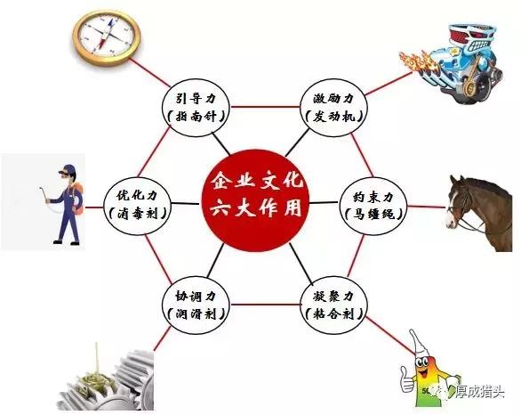 那么,企业文化到底有什么作用呢?厚成历时多年实践、潜心研究,并请教各路高手,总结出关于企业文化的六大作用。请看下图: