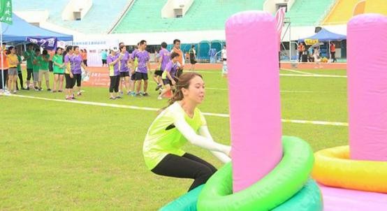玩法:这是一个强调竞争与配合的项目,要求两个队员用背部夹住气球,用最快的速度跑向终点。