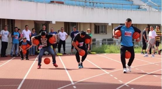玩法:以接力赛的形式进行,但是队员需要在两腿之间夹起一个球,左右手也分别拿一球,期间球不能落地。