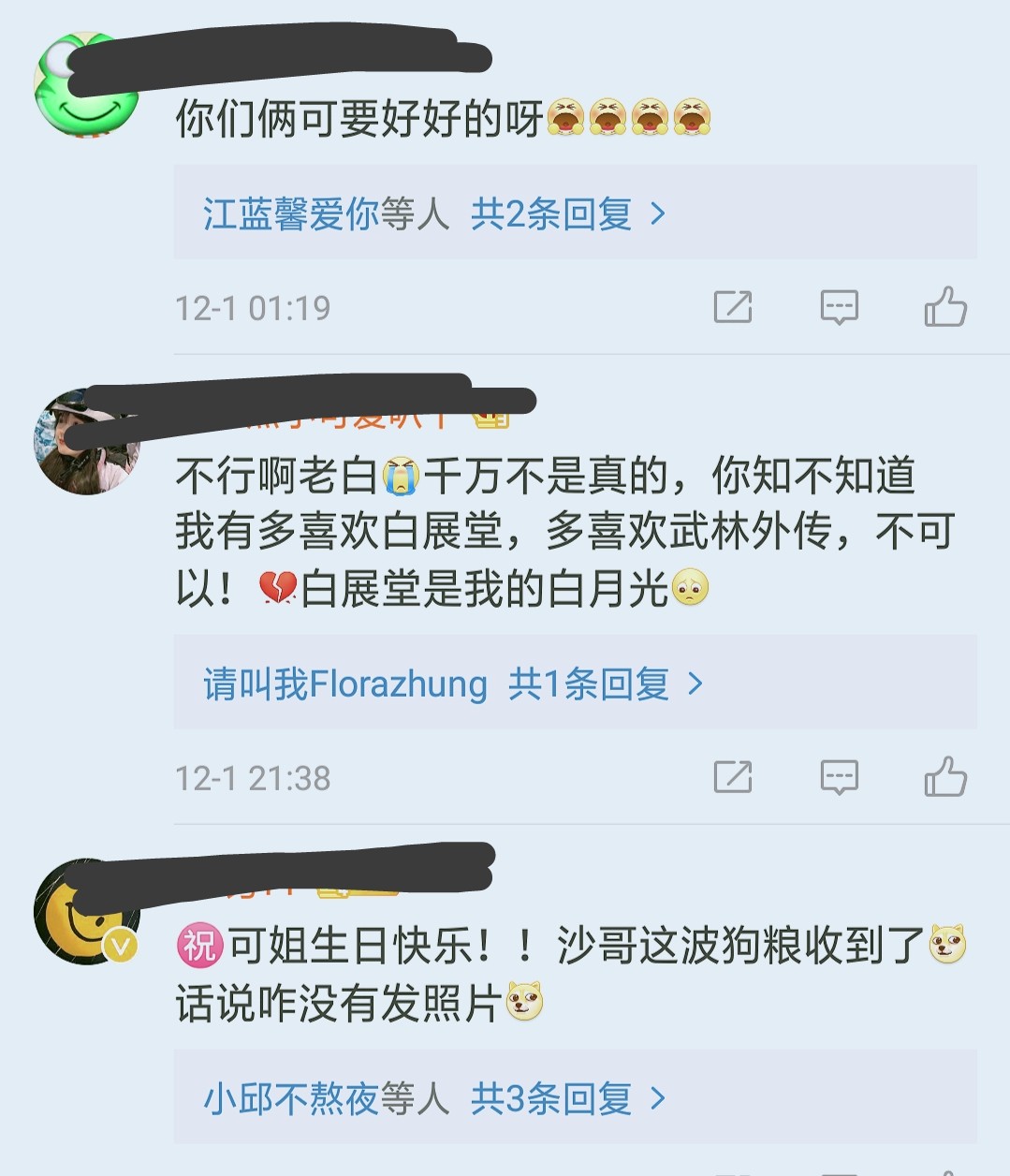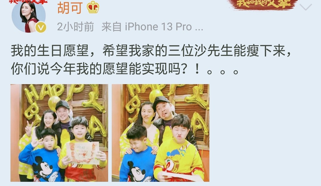 胡可的账号在12月1日也更新了内容,是一家人过生日的图片其乐融融。