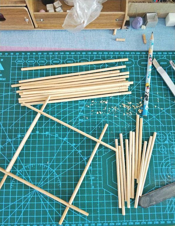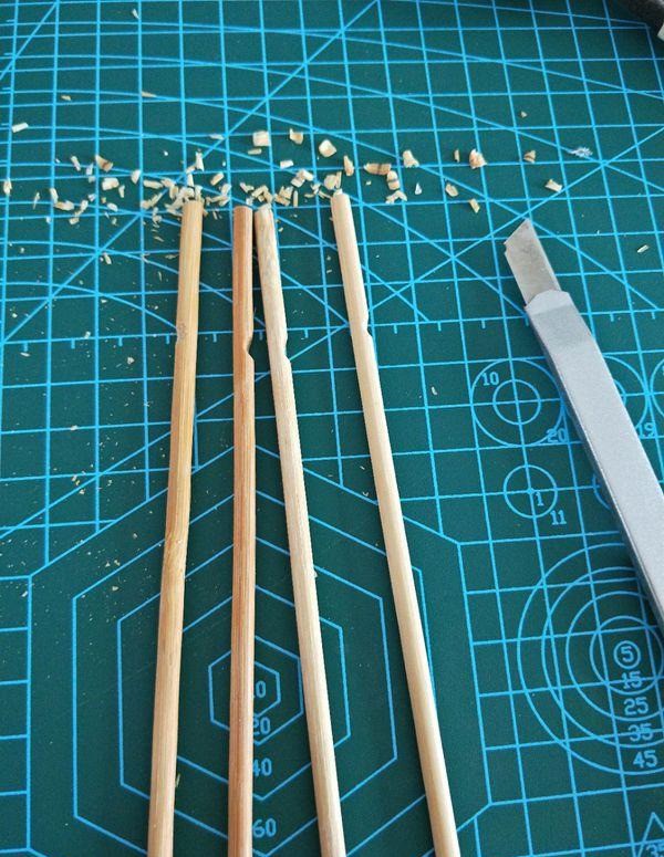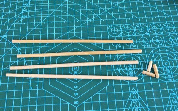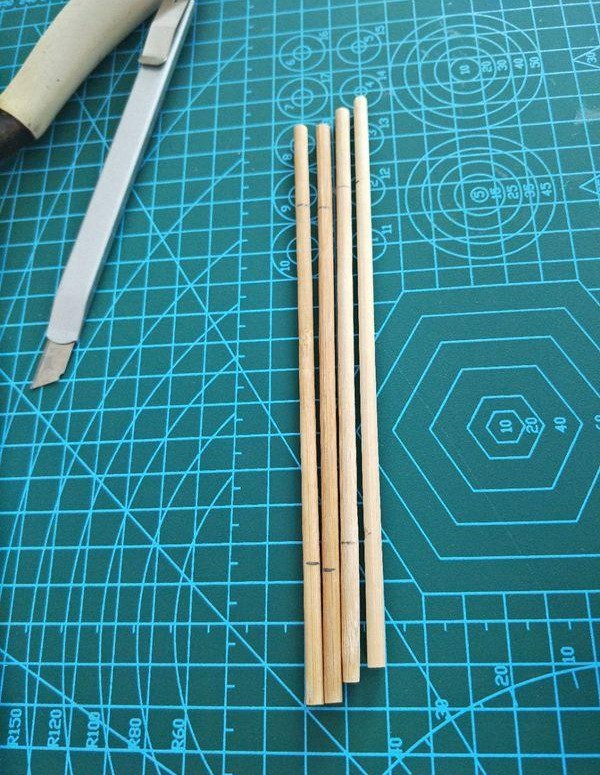 2、选四根,剪成相同的长度。