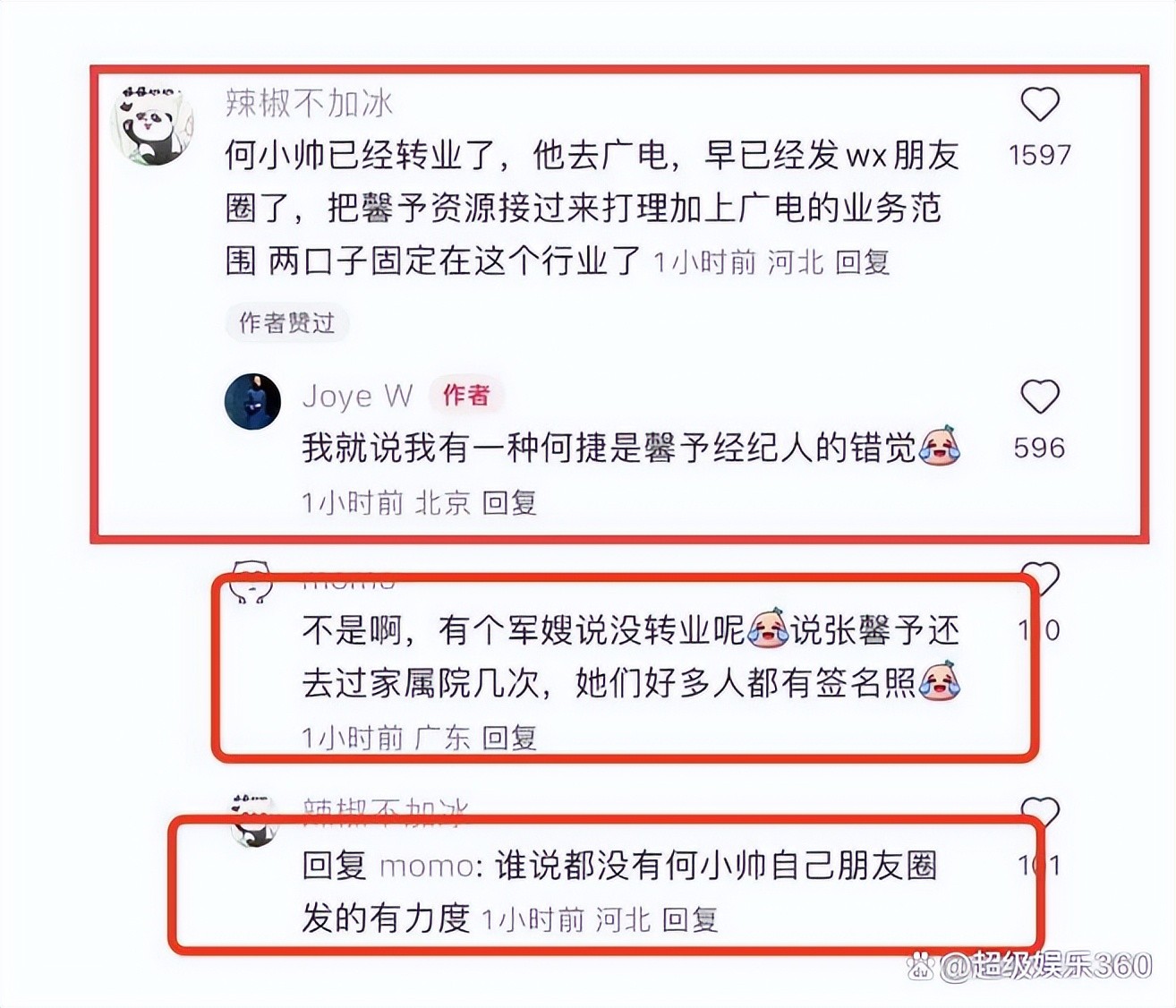 这一消息让不少网友感到惊讶,有人甚至怀疑何捷是否已经成了张馨予的经纪人。何捷的朋友还表示,很多战友都知道何捷转业的事实,有人脉的人可以去求证。