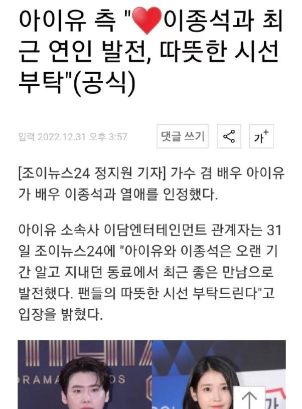 22年底最后的喜讯!李钟硕承认与IU恋情!IU:希望粉丝 可以祝福!