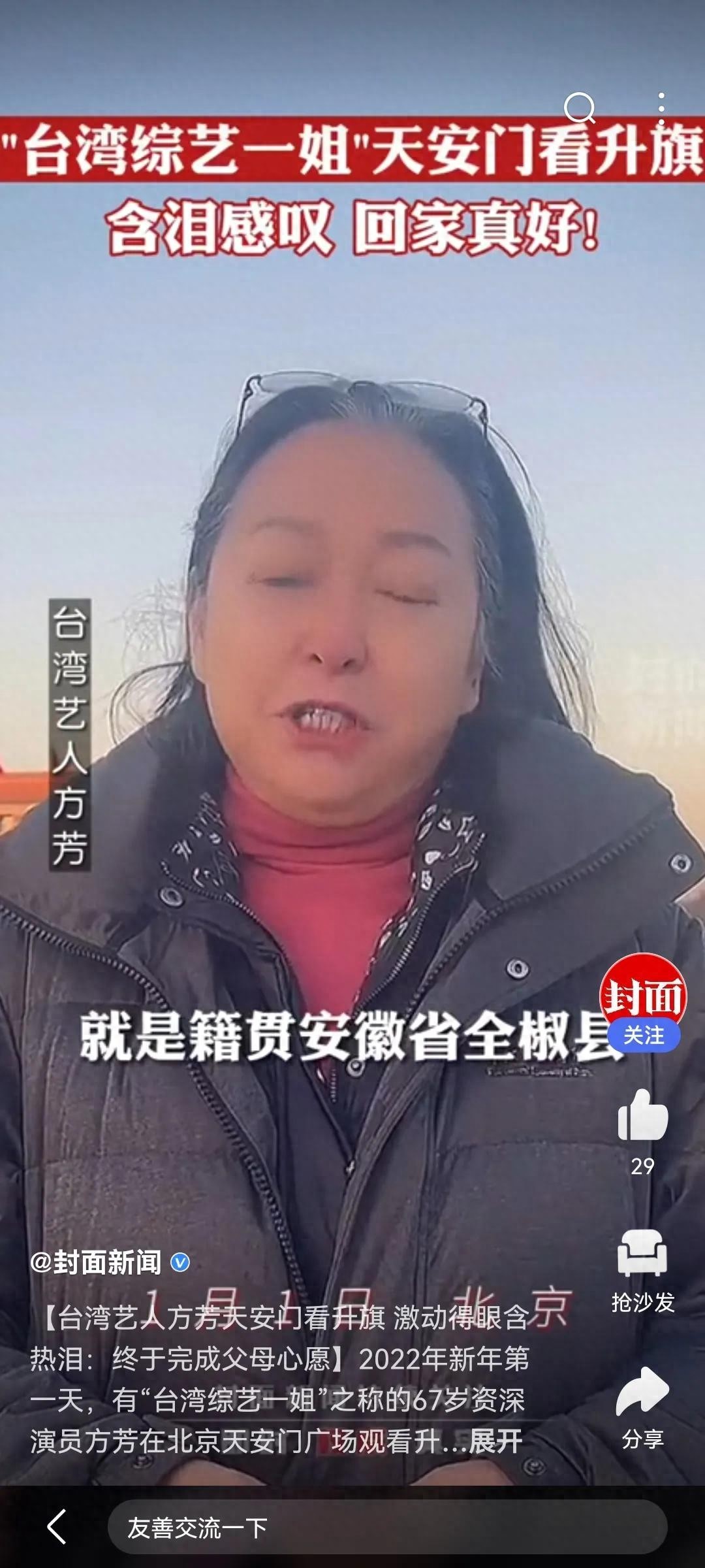 近日,方芳在抖音上透露,11月份已申办办理台湾居民居住证。定居在北京的方芳说道:我觉得在这里真的是,安全安心自在。