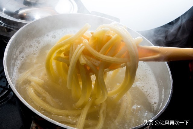 铁锅大火烧热一锅水,倒入200克挂面。用筷子搅拌几下,盖上锅盖,煮3-4分钟。开盖,加些清水,用筷子搅拌几下,盖上锅盖。小火。直至再次水开面滚。熄火,焖煮30秒。