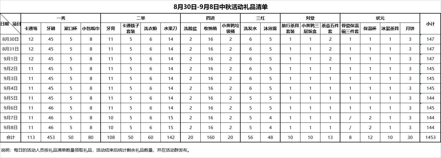 我们了解到该次活动物品也是比较多的,包含了许多的活动物品,详情图看下图: