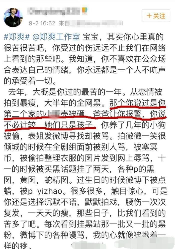 此前,郑爽工作室就替郑爽委屈。心疼郑爽去年一年,一直被黑,被辱骂,爱狗被偷甚至被P遗照。