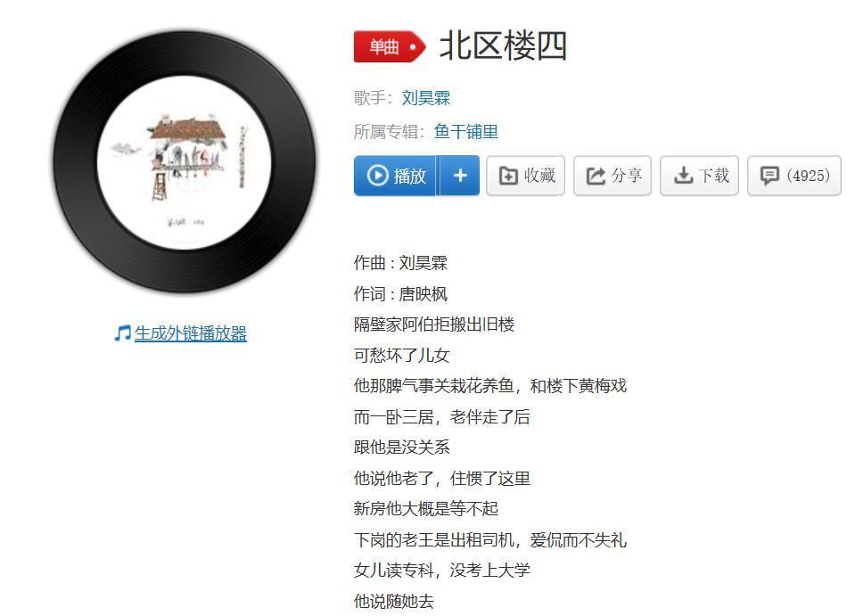 这几天我一直单曲循环一首歌,刘昊霖的《北区楼四》