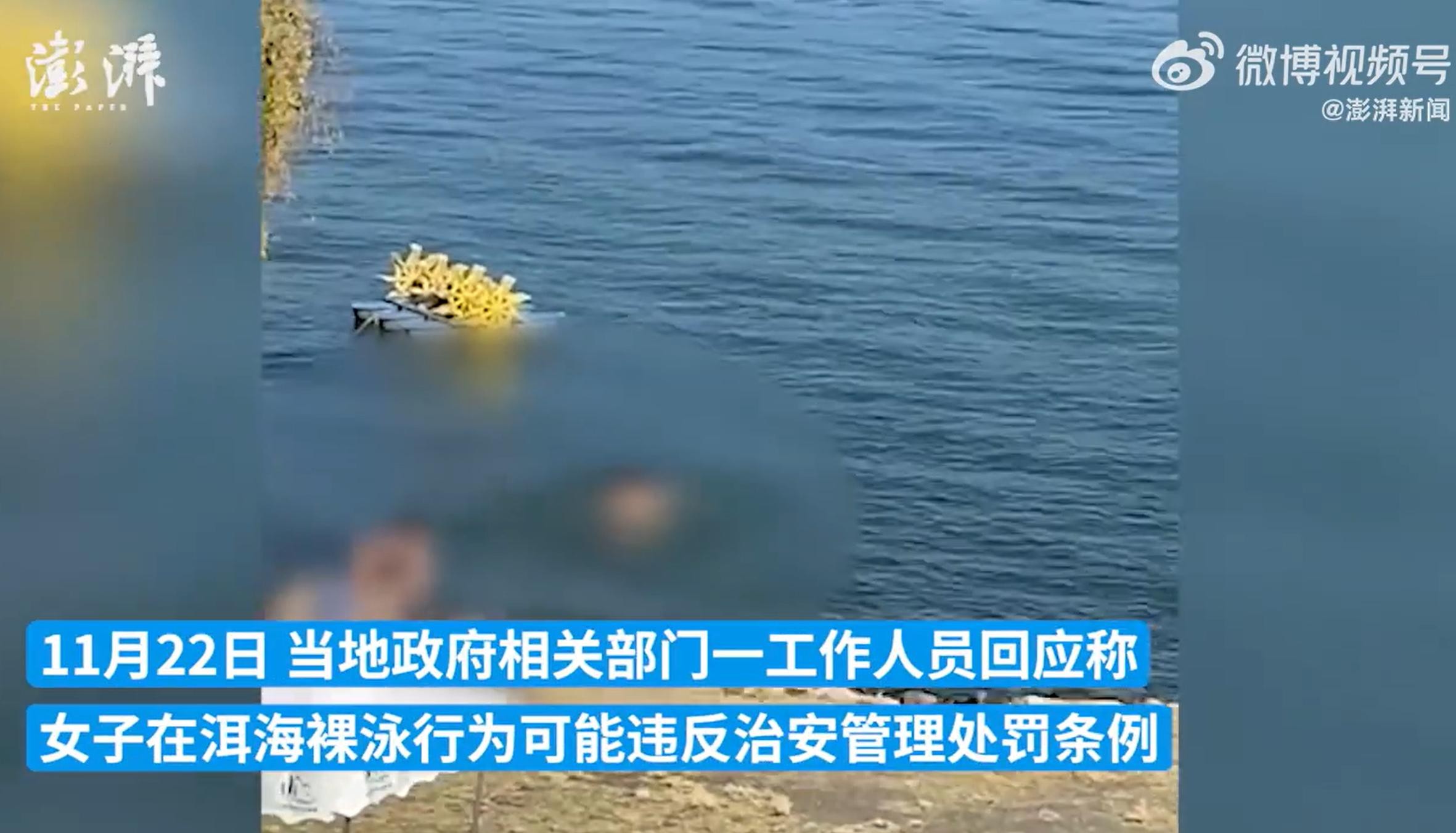 据澎湃新闻报道,近日,一段女子在云南大理洱海裸泳的视频在网络流传,引发关注。
