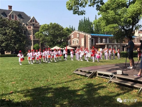 2017年5月10日下午,长宁区威宁小学的鼓号队队员们参加了区级鼓号队比赛。