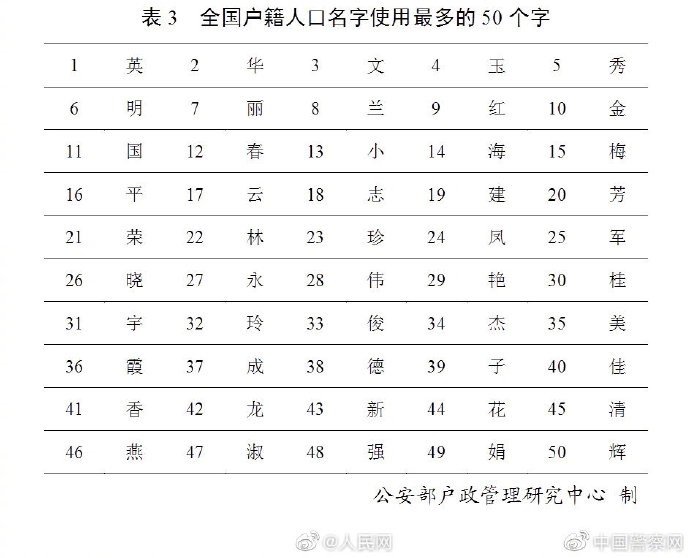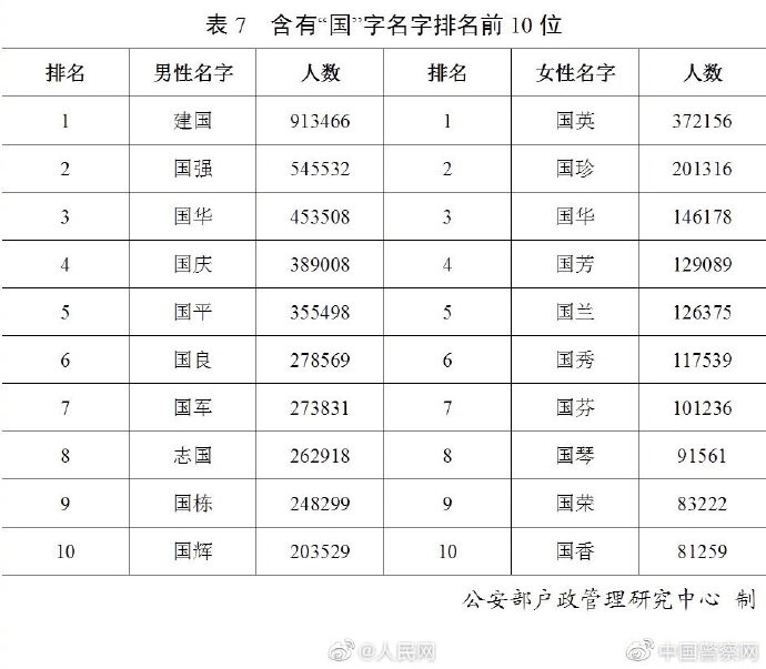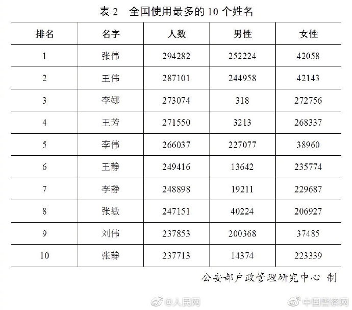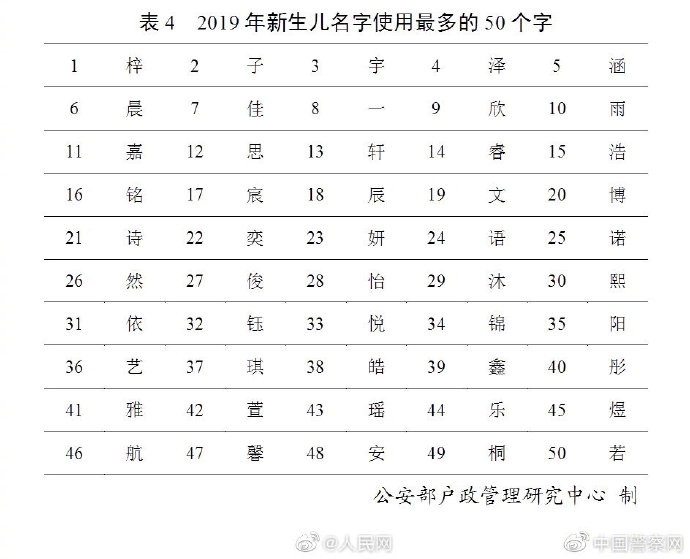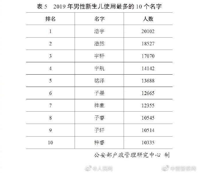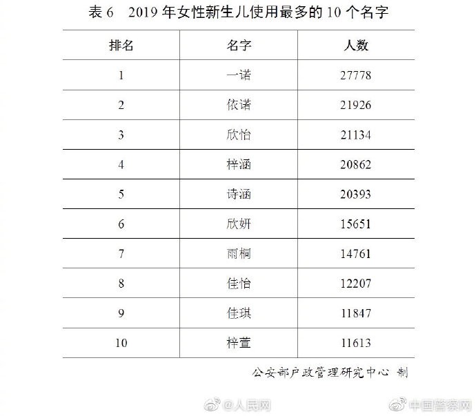 公安部户政管理研究中心发布“2019年全国姓名报告”,内容包括#百家姓最新排名#;各省(区、市)第一大姓氏;全国使用最多的10个姓名;名字使用最多的50个字;2019年新生儿名字使用最多的50个字...详细↓