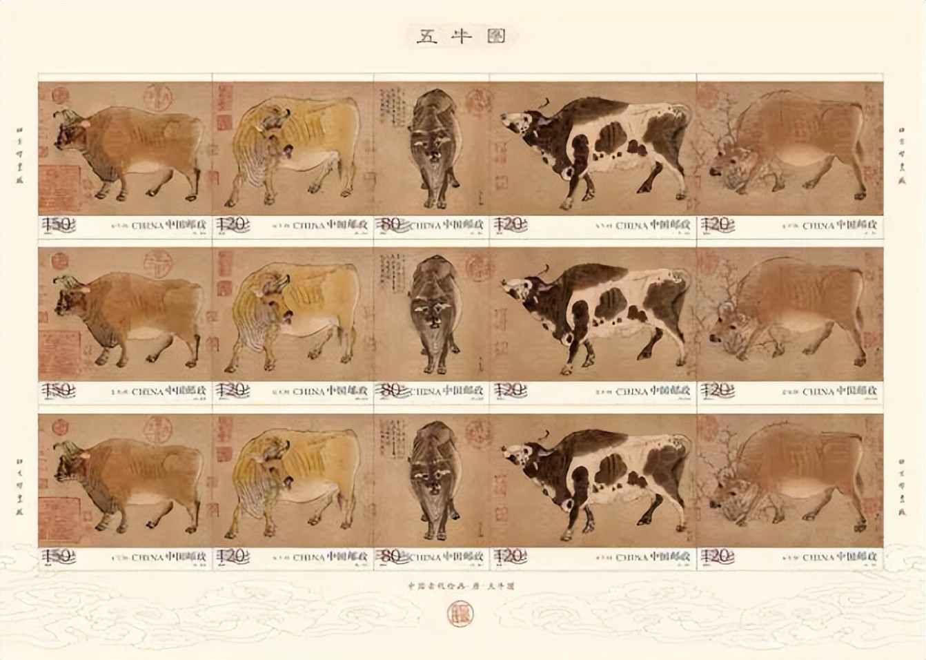 “五牛图”整版票