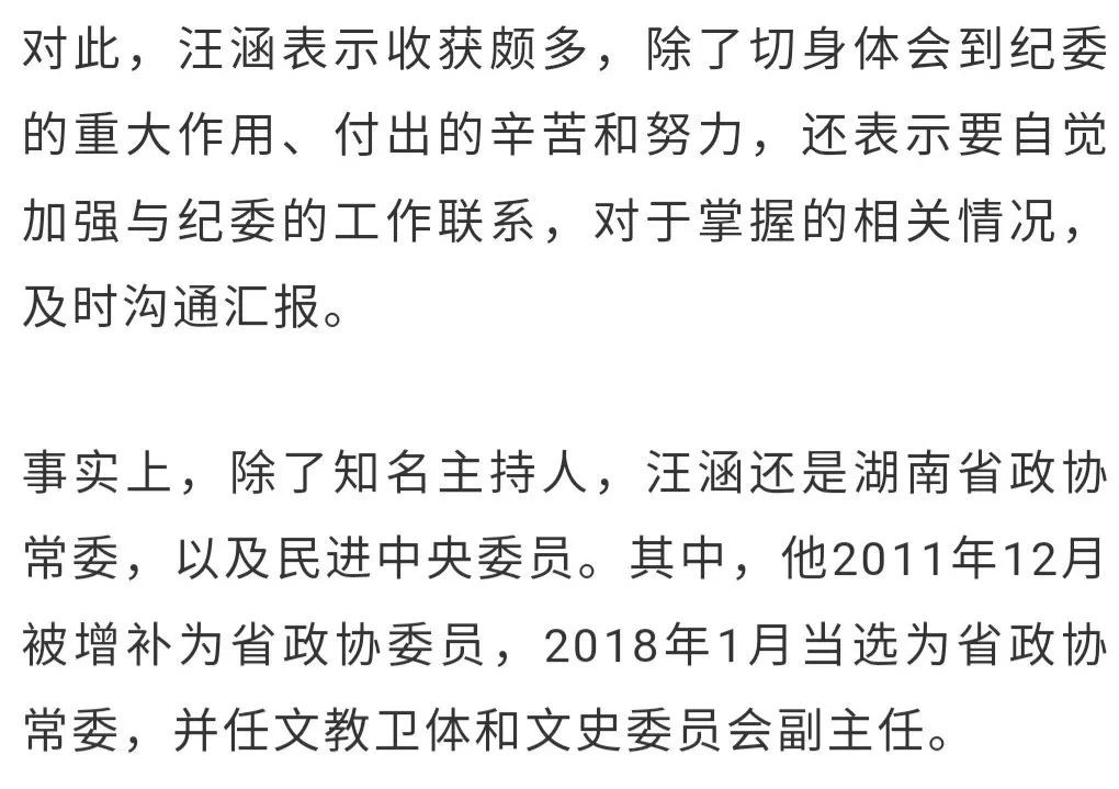 记者注意到,加入中国民主促进会,是在汪涵任省政协委员期间。2014年4月,他前往民进湖南省委机关,汇报自己希望加入的一些想法。随后,他加入了民进大家庭。2015年12月,在民进十三届四中全会上,他又被增补为民进中央委员。