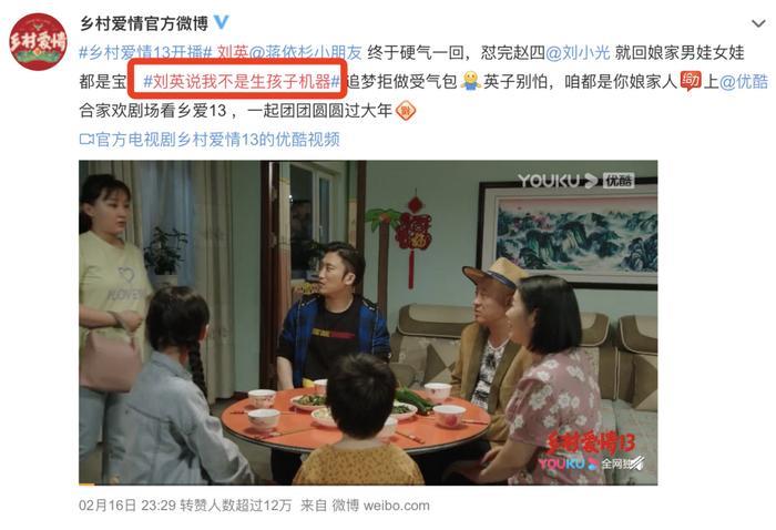 《乡爱13》开播的时候,话题词#刘英我不是生孩子的机器#上了热搜。