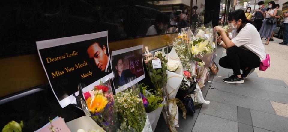 粉丝在张国荣殒命的文华东方酒店悼念。 (资料图)