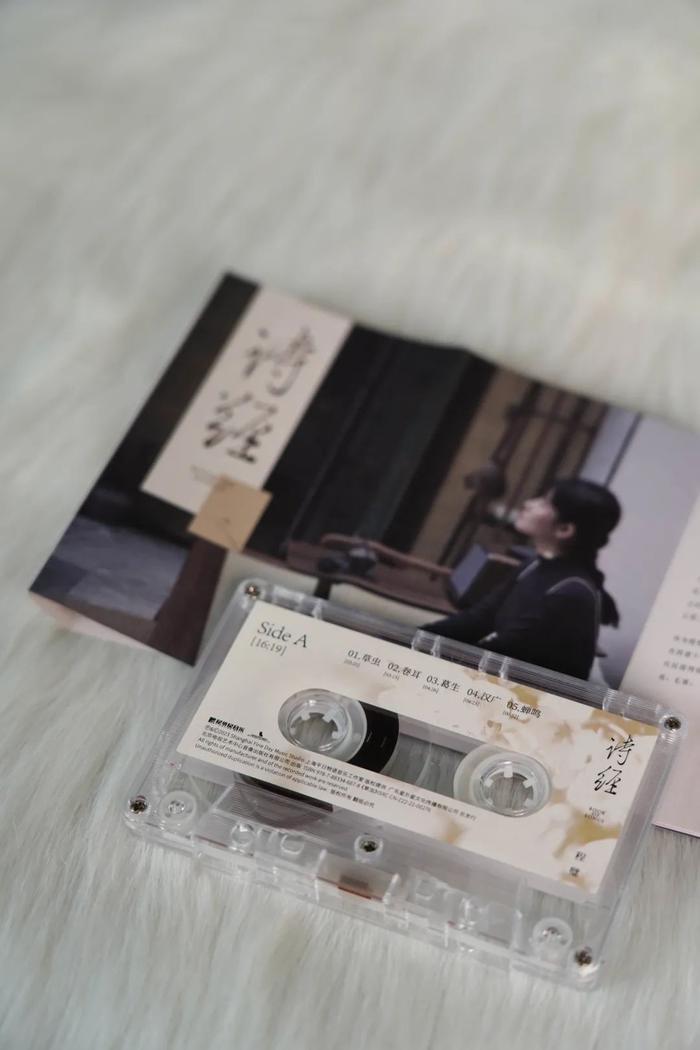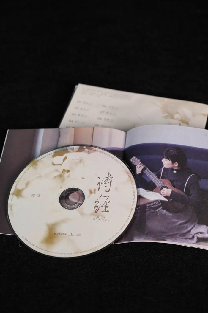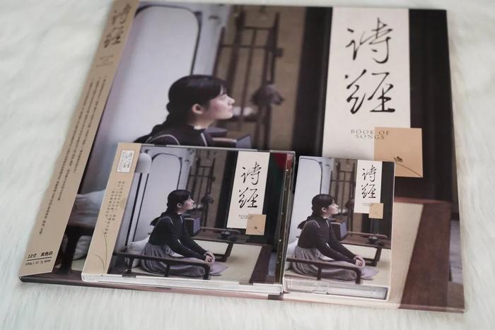 《诗经》专辑分别以CD、黑胶、卡带三种载体呈现,满足不同乐迷的聆听需求。实体专辑封面与数字版本不同,除了采用古籍样式呈现标题《诗经》外,灰色、原木色等配色使用、程璧独坐于古意盎然的茶室之中的场景,更是令人在还没按下播放键前,就已经感受到浓浓的诗意。