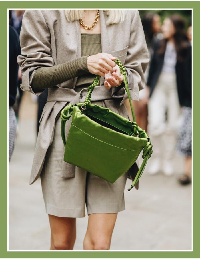 绿色系的包包也很出彩,可以与同色系服饰搭配,也可与白色黑色浅灰等等这些色系的服装组合起来,会显得视觉感很赞