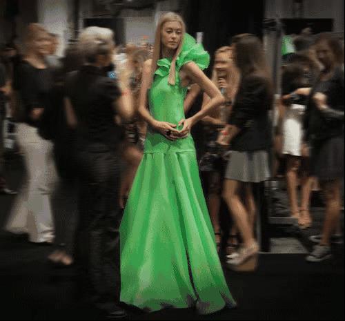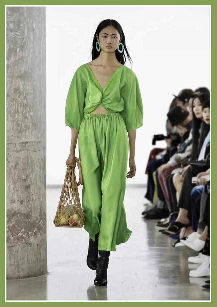 绿色系的单品出现在T台的几率,那是超级的多的,不管是上衣裤子或是裙子,以及包包和鞋子,它们的出场率都挺高