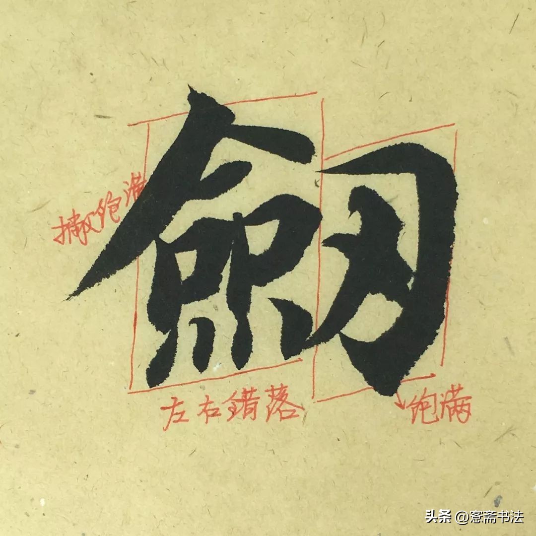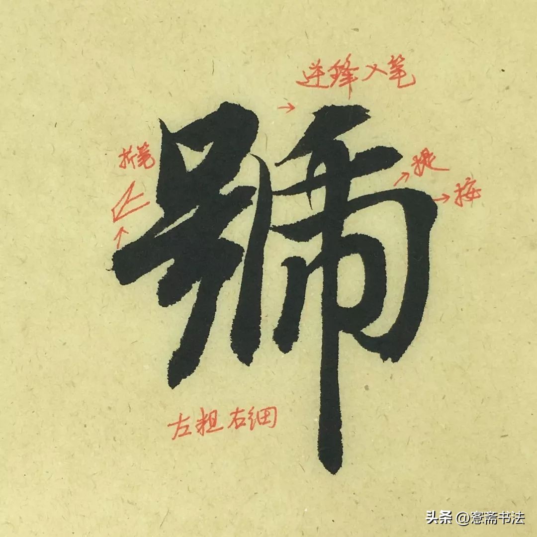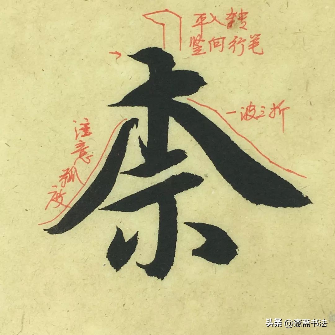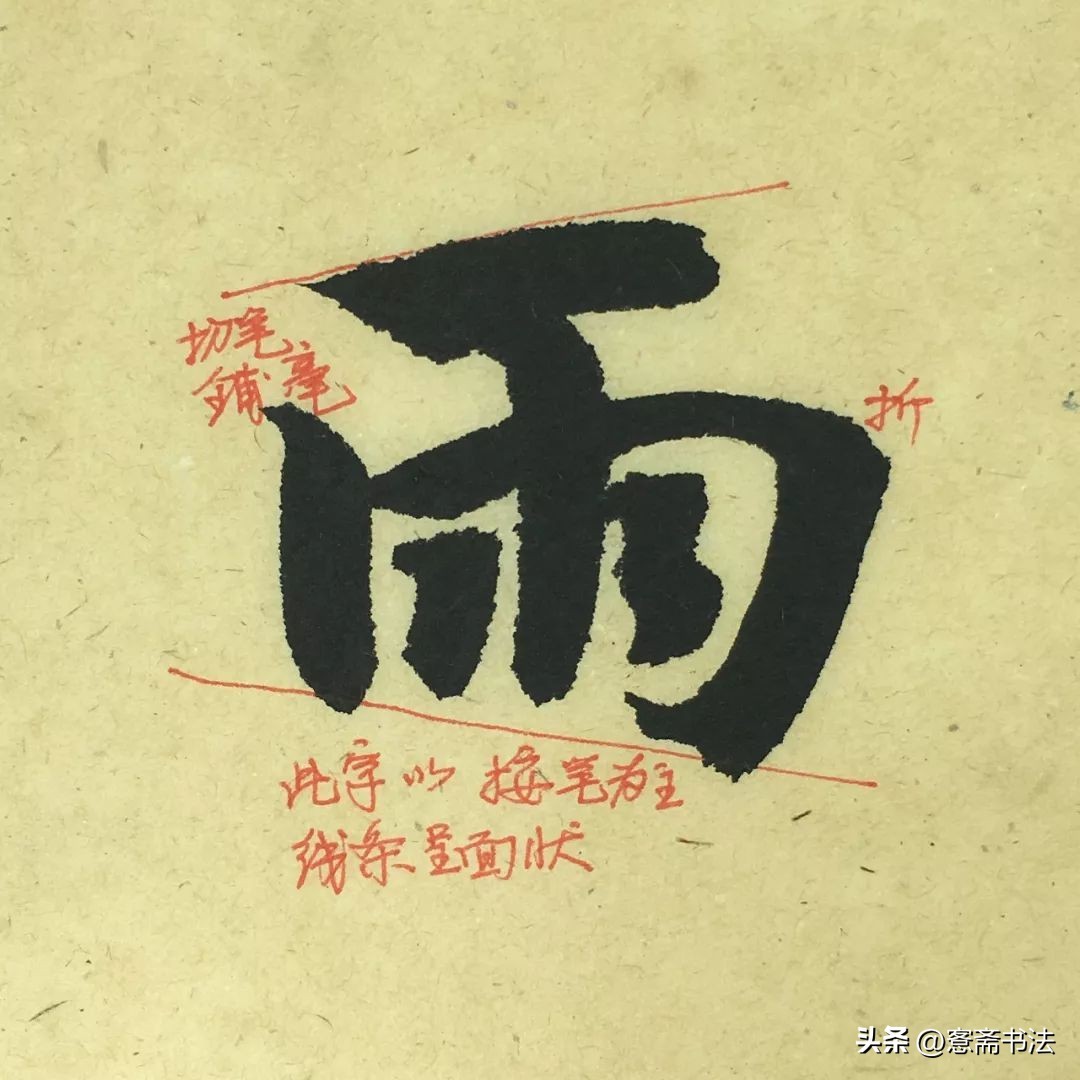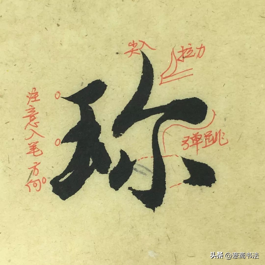 “号”字是典型的细笔。故要善于运用笔锋,不可写得纤弱。虽然线条较细,但是也要交代出起、收、转、折的各种关系,否则容易写得像硬笔字。左边有几个连带的折笔尤其需要交代清楚。