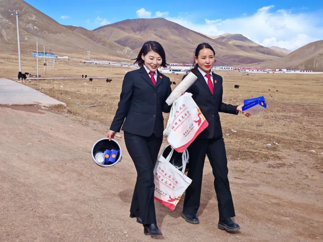 她常说:“要把屁股端端地坐在老百姓的这一面,用一言一行、一举一动切实打通司法为民‘最后一公里’。”为了让法律走进牧民群众的心中,索南曲吉和她的团队坚持用“带着糌粑味儿、酥油香”的语言,将抽象的法条化作鲜活的故事。在牛羊成群的草原间,在热气腾腾的酥油茶旁,她用通俗易懂的语言讲解法律,用贴近生活的案例消除隔阂。