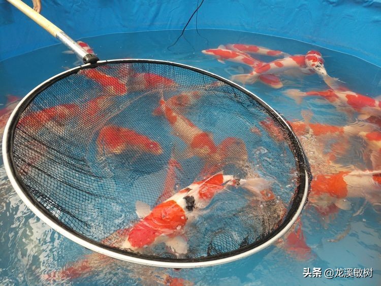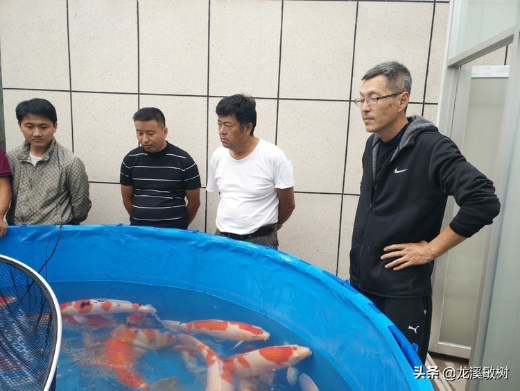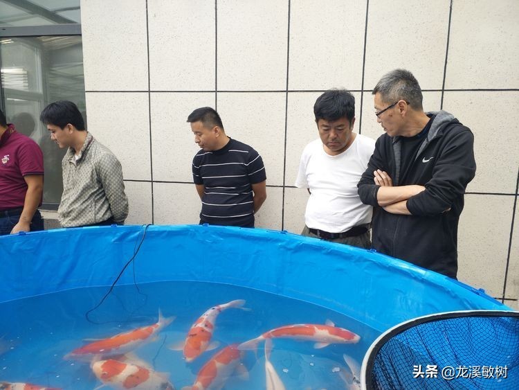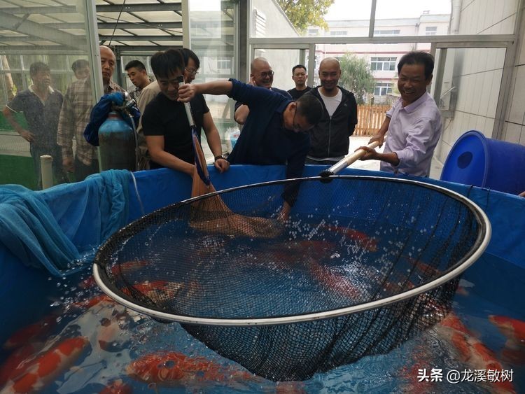中国锦鲤界的鱼神郭斌先生在德州锦鲤池扬后亲自操网为各锦鲤业者和锦鲤超级玩家讲解锦鲤