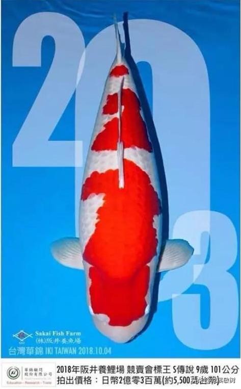 在2018年阪井的拍卖会上,新鲜出炉的标王“S传说”拍出了2亿300万日元(约1230万人民币)的天价,成为锦鲤界的传奇。S传说体型健壮,红色绯盘油润鲜艳,白色质地细嫩洁白,就像是一件完美无瑕的水中艺术品。2017年身长97厘米,已经连续拿下日本两项锦鲤大赛的总冠军,身价倍增;2018年S传说长到101厘米,有人出价1亿日元想购买,饲主干脆拿出来拍卖,最终成为现在最贵的鱼王,轰动了整个世界。