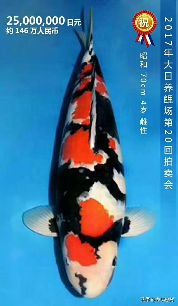 多摩龙,当时拍卖价格82万元,后来在2017年第十七届中国锦鲤大赛夺得锦鲤总合冠军。