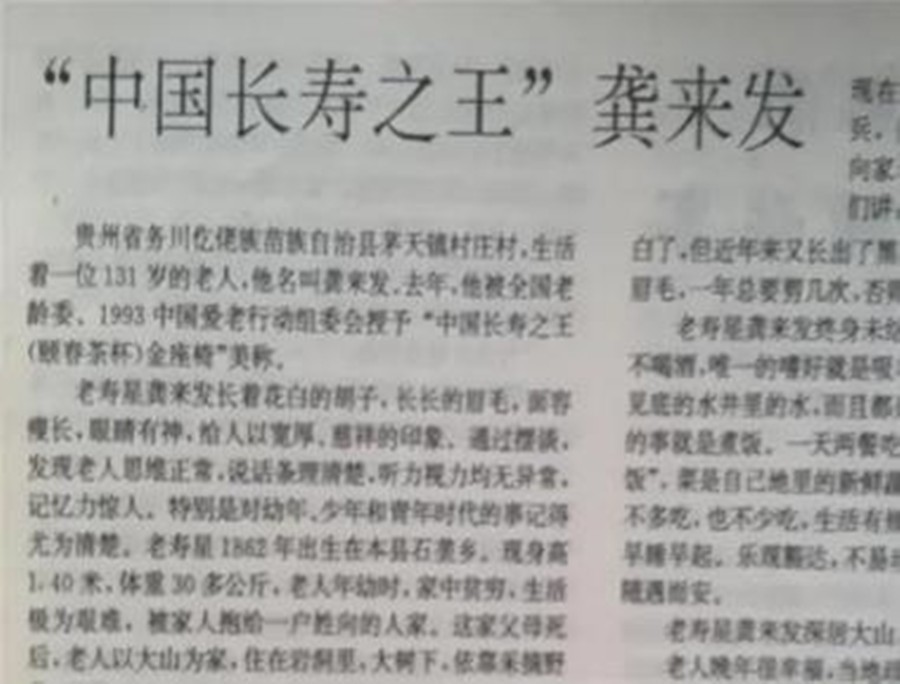 长寿老人龚来发:无儿无女活到133岁,平时很少吃肉,从来不饮酒