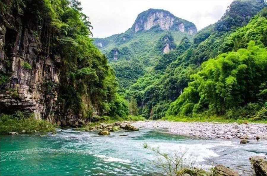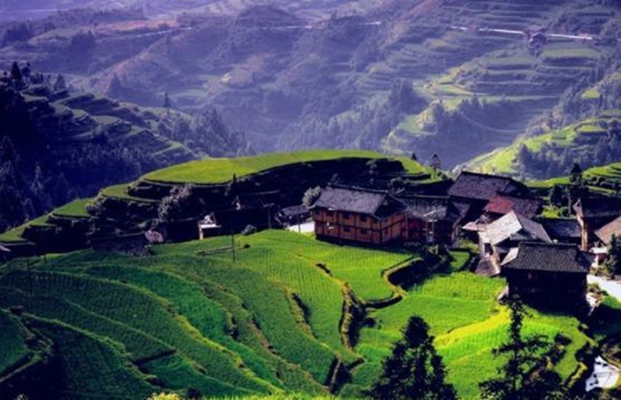身处其间,满眼是层层叠叠的山峦。顺着山间小路前行,一路野花点缀青草,不时有阵阵清风拂过,有青竹成林,随风发出沙沙的响声;林木茂盛,偶尔有粗壮的楠木树出现在林中,需要几人才能合抱;山泉流过,叮咚之间伴随着鸟儿鸣唱,奏出一段乐曲;阡陌交通,田垄织出了一块块格子形的花毯,陶渊明笔下的桃花源也就不过如此了!
