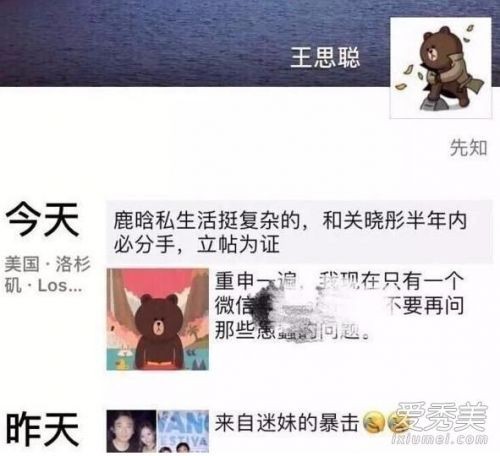 思聪 洛杉矶发来评论“鹿晗私生活挺复杂的,和关晓彤半年内必分手,立贴为证”
