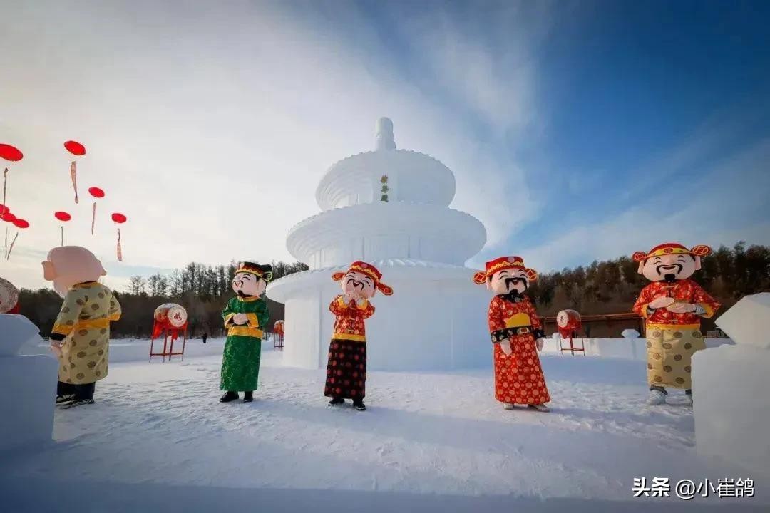 梅河口的知北村,东北农村的厚雪篱笆院,大红灯笼高高挂,很有童话色彩的地方,最创意的是那里的雪人可以一秒换装。