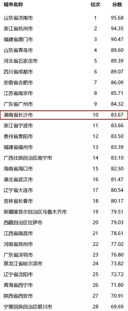 长沙排名第十,给予通报表扬