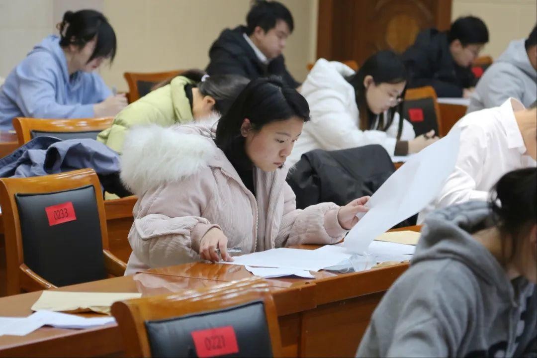 竞赛现场纪律严明,气氛严肃紧张,选手们全神贯注、奋笔疾书、认真作答,展开了一场“笔尖”上的较量。