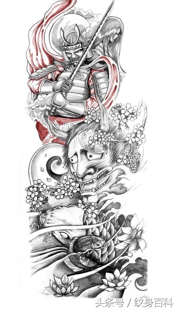 我们说过,现在我们看到的很多花臂都是后期慢慢接上去的,最初可能只是一个包小臂或者大臂纹身,但是,这并不代表就没有完整的花臂纹身手稿。必须承认的是,设计好的花臂纹身手稿更具有整体性。