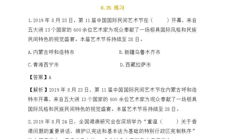 2019年1~12月份时政热点汇总,电子版共600页,含热门考点及习题