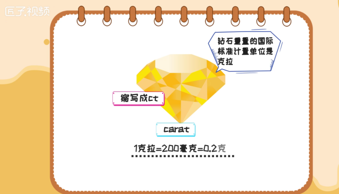 钻石重量的国际标准计量单位是克拉,英文carat,通常缩写成ct。1克拉=200毫克=0.2克。