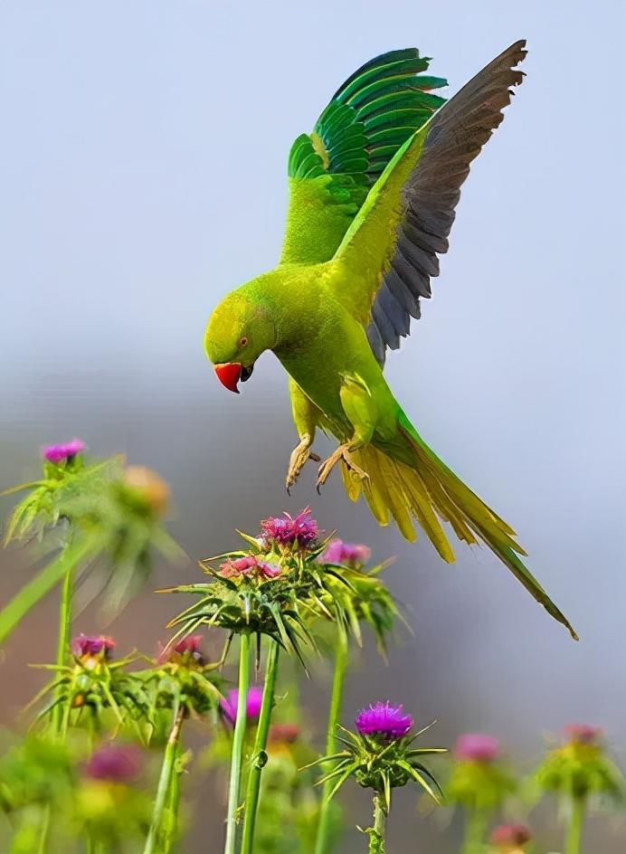 译文:秦吉了出自南中一带,浑身彩毛很漂亮;心思聪慧舌头灵巧,鸟语人言样样精通。