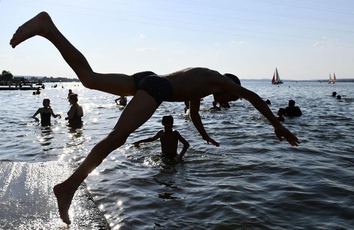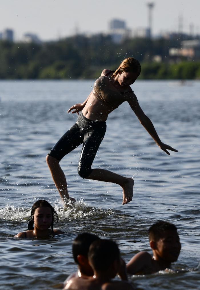 7月25日,人们在俄罗斯叶卡捷琳堡的一个湖中游泳。新华社/卫星社