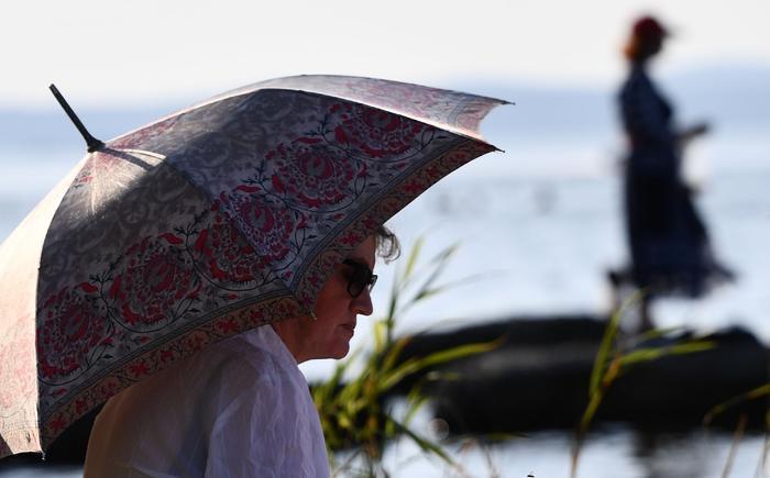 7月25日,一名女子在俄罗斯叶卡捷琳堡的一个湖边休闲。新华社/卫星社